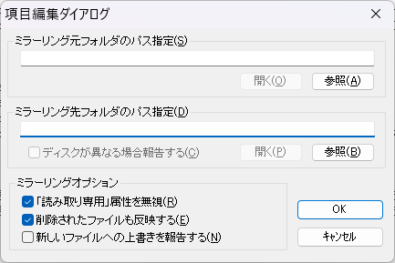 また、元ファイルを削除した場合、同期先でも同じように削除するのかそれともそのまま残すのかなどの設定もできます。もう何年も使っているソフトです。
