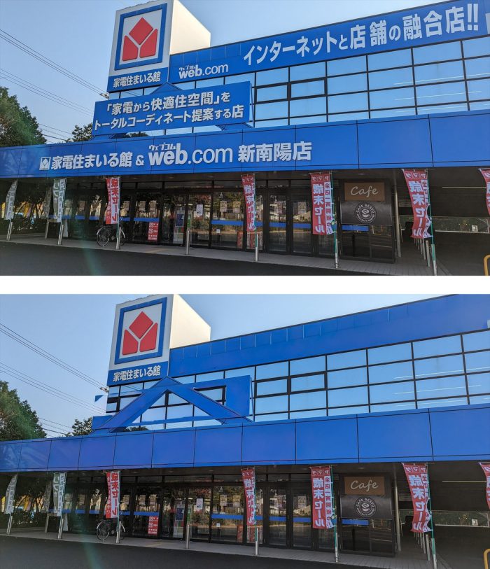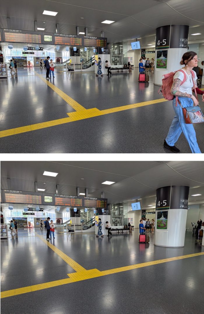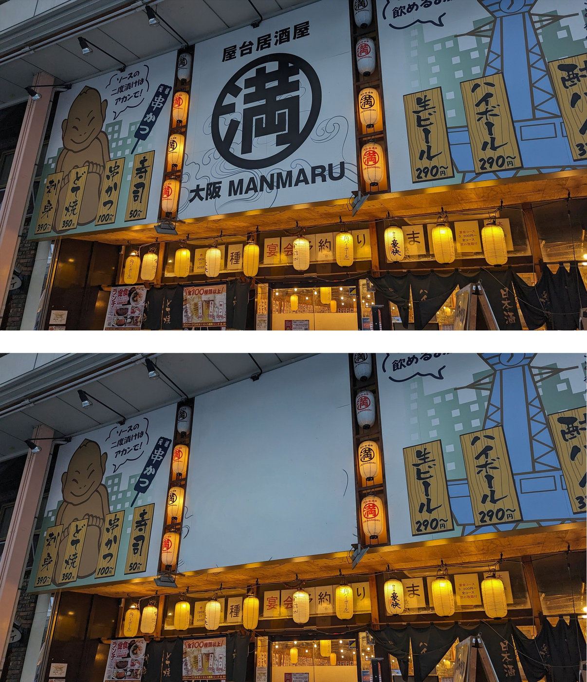 上が元の画像、下がその中の何かを消したものです。消した部分はかなり綺麗に処理されています。
